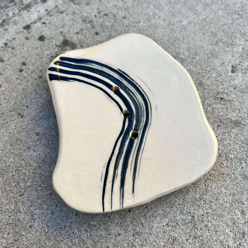 Dizajnová keramická mydelnička je vyrobená ručne v dielni Keramika Svitek. Každý kus je originál – ručne tvarovaný, glazovaný a vypaľovaný.